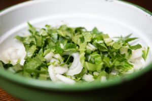 - Was de bladeren van de paksoi, vooral rond de stam kan er nog wel eens wat zand zitten.