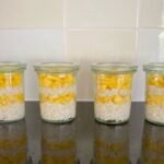Let op: Het is belangrijk dat je een rijpe mango gebruikt. Is er momenteel geen rijpe mango te vinden bij de supermarkt/toko in jouw omgeving? Gebruik dan een kaki vrucht. De textuur en zoetheid passen perfect bij de gezoete kleefrijst.