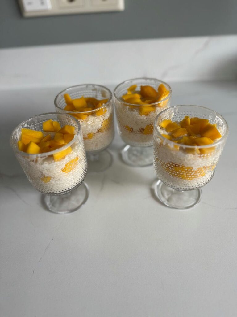 Hieronder vind je leuke manieren om de Mango Sticky Rice te presenteren als onderdeel van een meergangen diner.